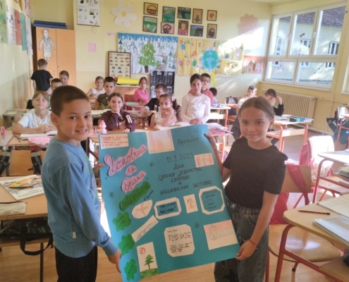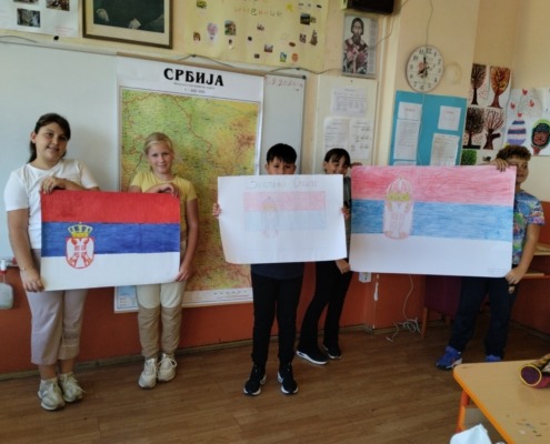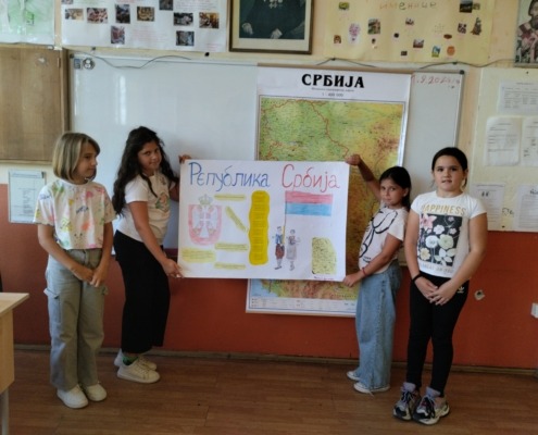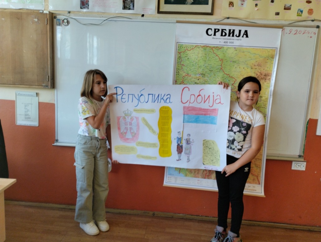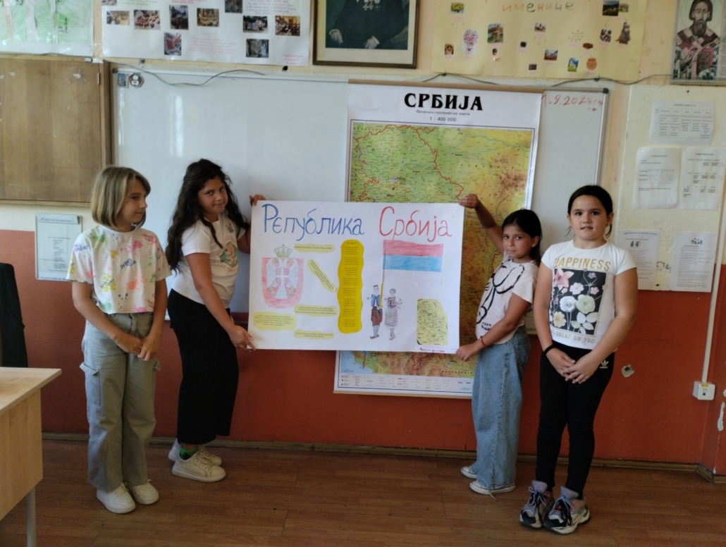 Ученици четвртог разреда кроз корелацију са наставом Природе и друштва урадили су паное где су истакли главна обележја Србије.