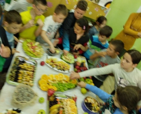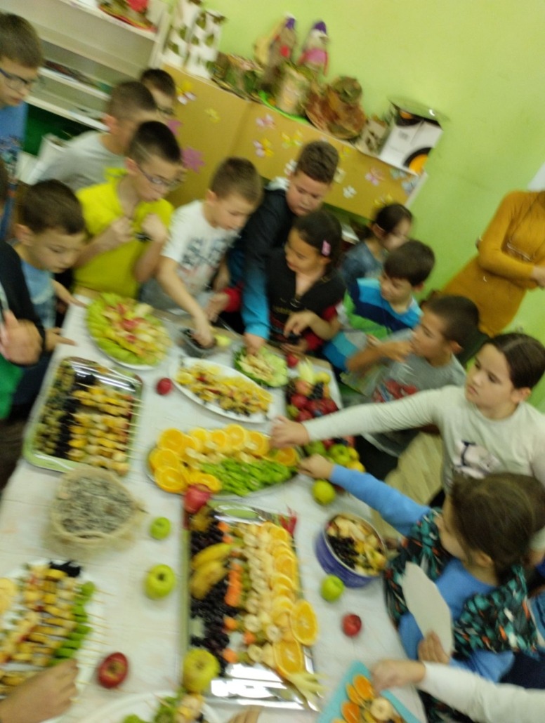 У четвртак, 16. 10. 2025. године ученици продуженог боравка су заједно са учитељицом Снежаном Голубов обележили Дан здраве хране. Циљ ове активности је популарисање здравог начина исхране међу ученицима јер је у времену у ком живимо све заступљенија брза храна и газирани сокови. Ученици продуженог боравка су прикупили воће које су донели и у просторијама продуженог боравка га аранжирали .По завршетку декорисања ученици су прочитали неколико лепих песмица у којима се говори о воћу и поврћу а потом сезаједно са осталим ученицима из њихових разреда послужили својим лепо декорисаним воћем. Уз дегустацију су водили и разговор о здравој храни и намирницама које би требале да буду најзаступљеније у исхрани.