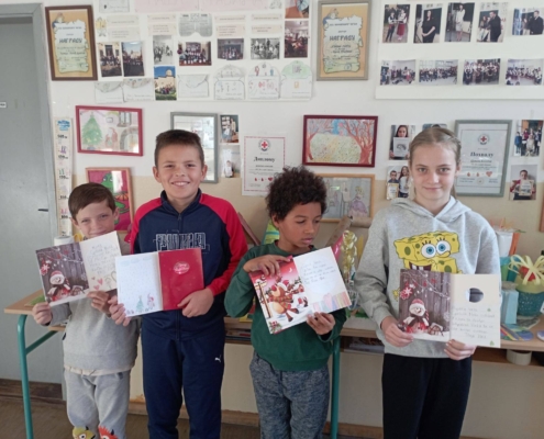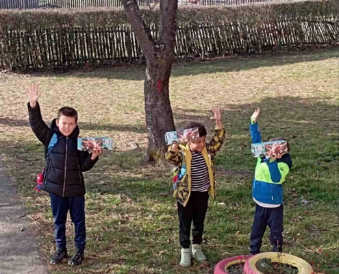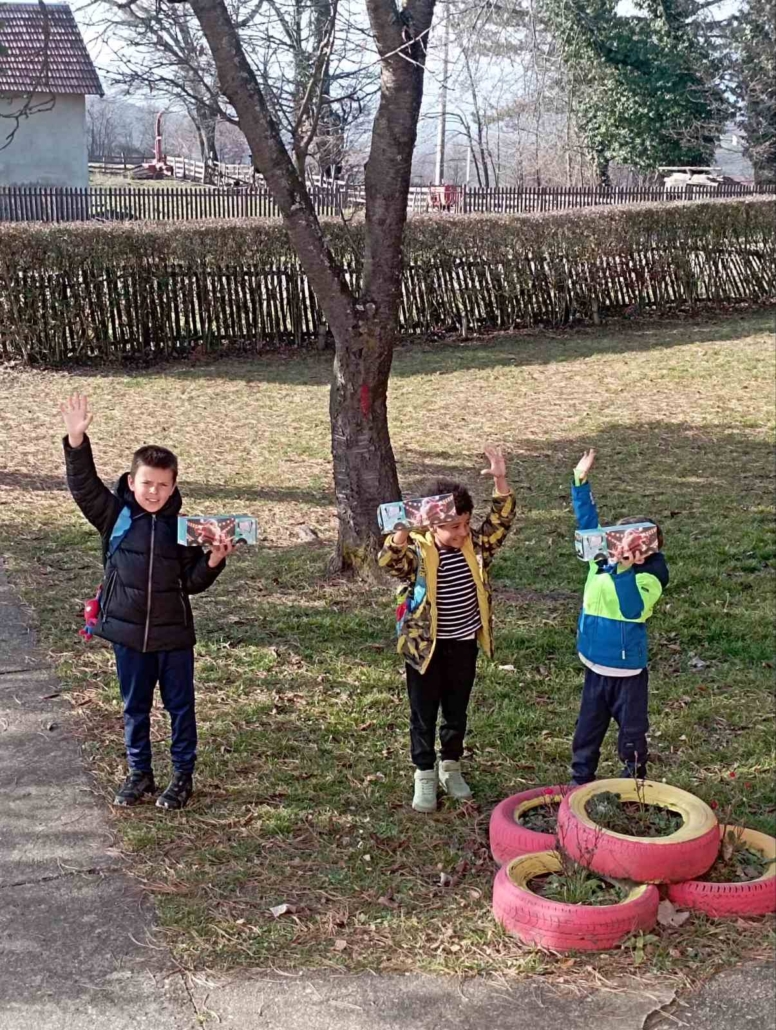 Госпођа Душица и господин Дејан Козодер из Теочина даривали су новогодишње пакетиће ученицима издвојеног одељења школе у Теочину. С пакетићима у руци деца радосна иду кући. Радују се празницима и снежним данима.