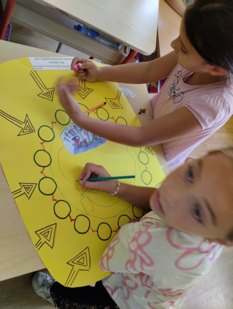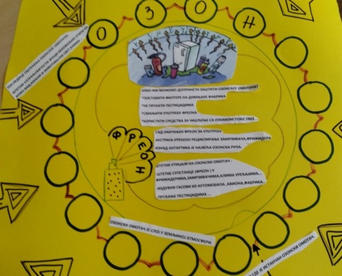 Све смо то на сликовит начин представили на паноу као и наш лични допринос за очување Озонског омотача.Осмислили смо и одиграли игру где је група Фреона сметала Озонима док су Љубичасти зраци то искористили и прошли кроз Озонски омотач.