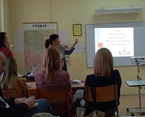 У среду, 26. новембра 2025. године, у нашој школи је реализован акредитован семинар чији су аутори и реализатори Катарина Ристановић Ацовић, професор енглеског језика (Гимназија „Таковски устанак“ Горњи Милановац) и Јелена Александров, професор историје (ОШ „Иво Андрић“ Прањани и Гимназија „Таковски устанак Горњи Милановац). Област програма је васпитни рад. Циљне групе су: наставници разредне наставе (9 учитеља), наставници предметне наставе (12 наставника) и директор школе. Број програма у Каталогу је 103, једнодневни семинар, 8 бодова.  Организатор програма је Центар за стручно усавршавање у образовању Лесковац. Компетенција коју програм развија: Н3 – компетенције наставника за подршку развоју личности детета и ученика, ССДУ 1 – нису објављени стандарди компетенција. Приоритетна област: П5 – Јачање васпитне улоге установе у правцу развоја интеркултуралног образовања, компетенција за демократску културу, укључујући и компетенције за демократску културу у дигиталном свету, моторичких способности ученика, заштите од дискриминације, насиља, злостављања и занемаривања, очувања менталног здравља, превенције ризичних облика понашања, каријерног вођења и саветовања ученика, подршке јачању родитељских компетенција, превладавању стреса и развојних криза. Општи циљеви: Развијање компетенција одељенског старешине за ефикасно руковођење разредним одељењем. Специфични циљеви: Усвајање знања, вештина и ставова који ће помоћи одељенском старешини да развије подстицајну инклузивну средину за развој социјалних релација међу ученицима и пружи пуну подршку личном развоју сваком члану ученичког колектива; Развијање вештина за успешну реализацију родитељских састанака и остваривање добре сарадње са родитељима ученика. Семинар је отворио директор школе уз речи добродошлице. Потом су се реализатори представили уводним излагањем, које је обухватало представљање, циљеве, теме семинара. Програм је био разноврстан, укључујући: усмена и писмена излагања, презентације, занимљиве задатке који су били конципирани тако да учесници сваке групе (по добијеном задатку) тимским радом презентују, видео линкове – Лествице одговорности Бруса Гордона (сви смо одговорни за функционисање система, јер смо сви део тог система) и паузе. Рад на семинару протекао је у веома пријатној атмосфери, уз максимално ангажовање реализатора и учесника и са доста нових идеја у даљем раду. По завршетку семинара анализирани и евалуирани су резултати од стране реализатора и учесника.